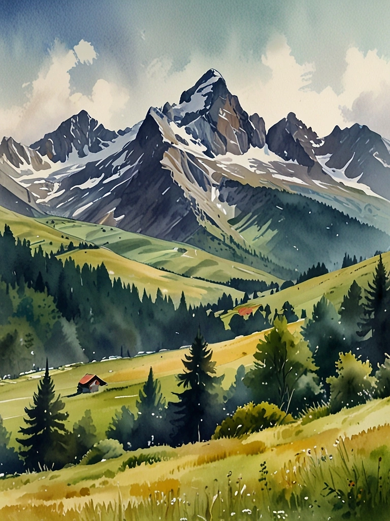 Потрясающий акварельный постер с видом на драматичные пики Швейцарских Альп и нежные альпийские луга. Естественный свет и безмятежная атмосфера создают ощущение чистоты горного воздуха. Идеальное решение для тех, кто ценит природную красоту и утонченный стиль интерьера.