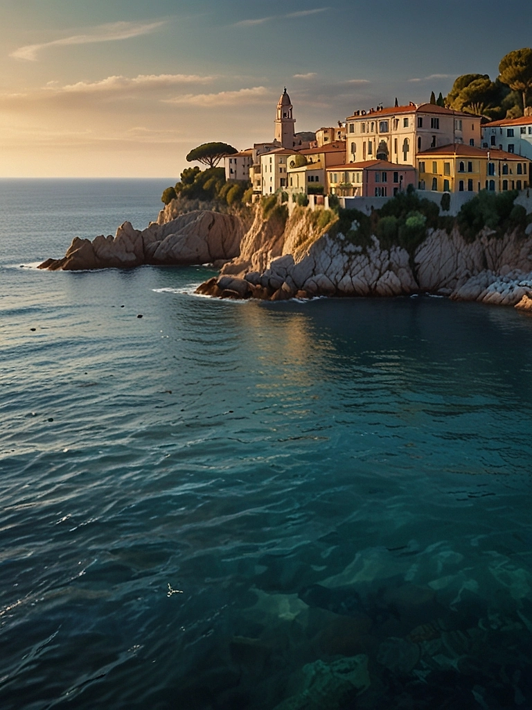 Акварельная композиция, запечатлевшая магию итальянского побережья в час восхода солнца. Пастельные фасады домов каскадом спускаются к морю, а мягкий золотистый свет обволакивает крыши и скалистый берег, создавая атмосферу спокойствия и романтики. Идеальный выбор для создания в интерьере уголка средиземноморского шарма и галерейной элегантности.