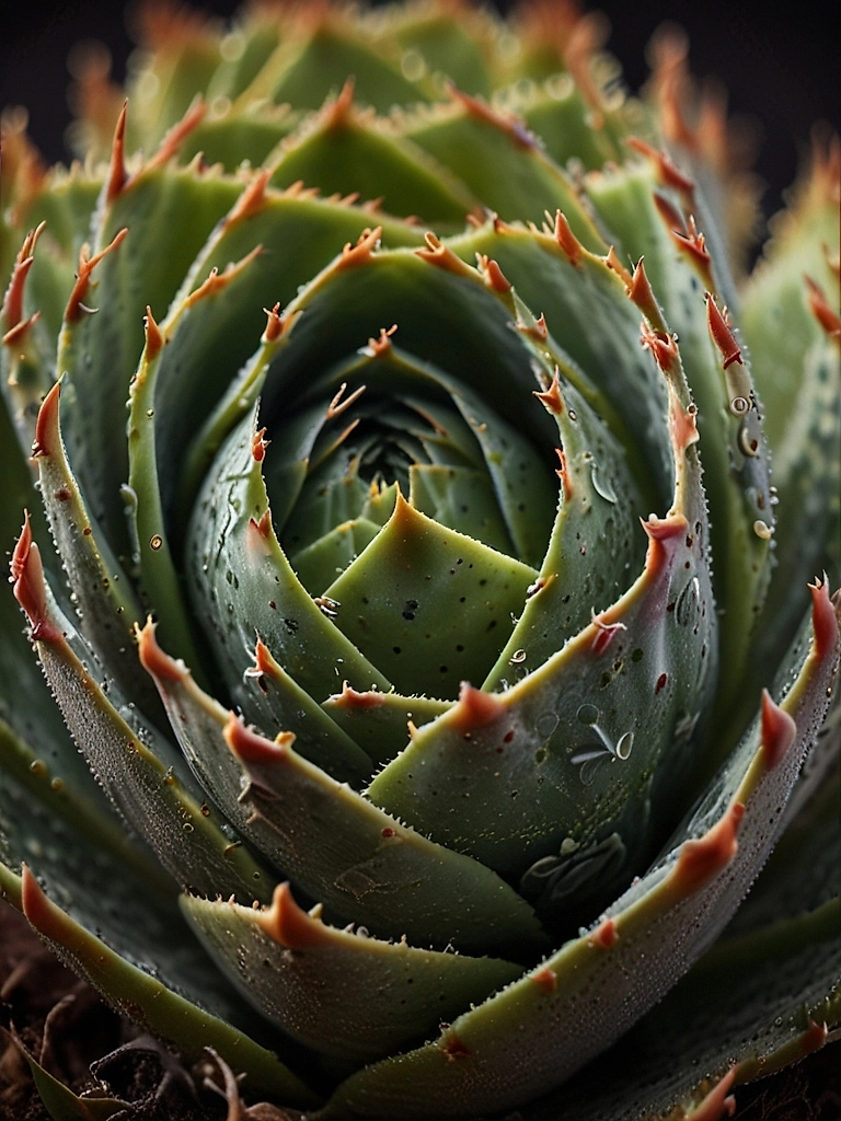 Макрофотография суккулентного растения, раскрывающая идеальную геометрическую структуру его листьев. Спиральное расположение мясистых пластин создает гипнотизирующий узор, подчеркивающий математическую гармонию живой природы. Постер приглашает в медитативный диалог с естественной архитектурой, став элегантным акцентом в минималистичном интерьере и символом спокойствия и порядка.