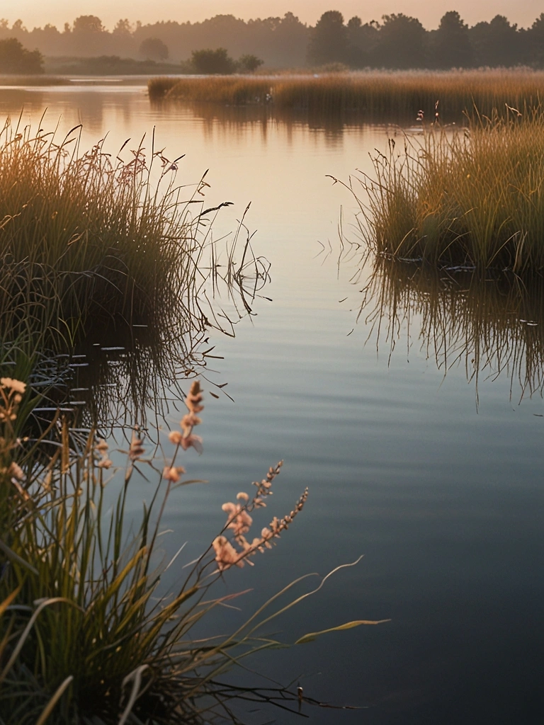 Магический постер с видом на озеро в момент пробуждения дня. Мягкий золотой свет рассвета, нежные тона пастели и зеркальное отражение воды создают атмосферу безмятежности. Идеальный выбор для интерьеров, ищущих гармонию и естественную красоту.